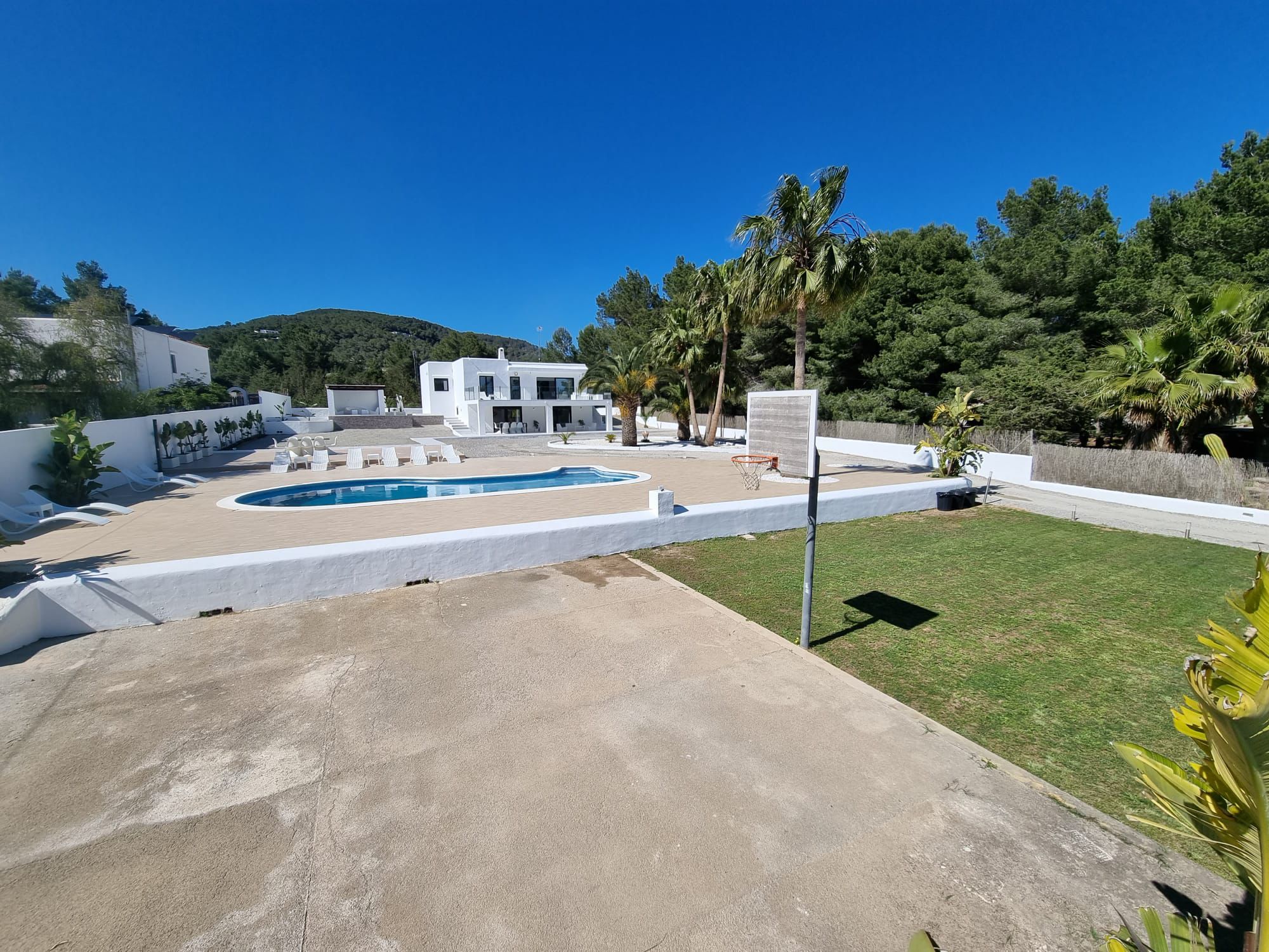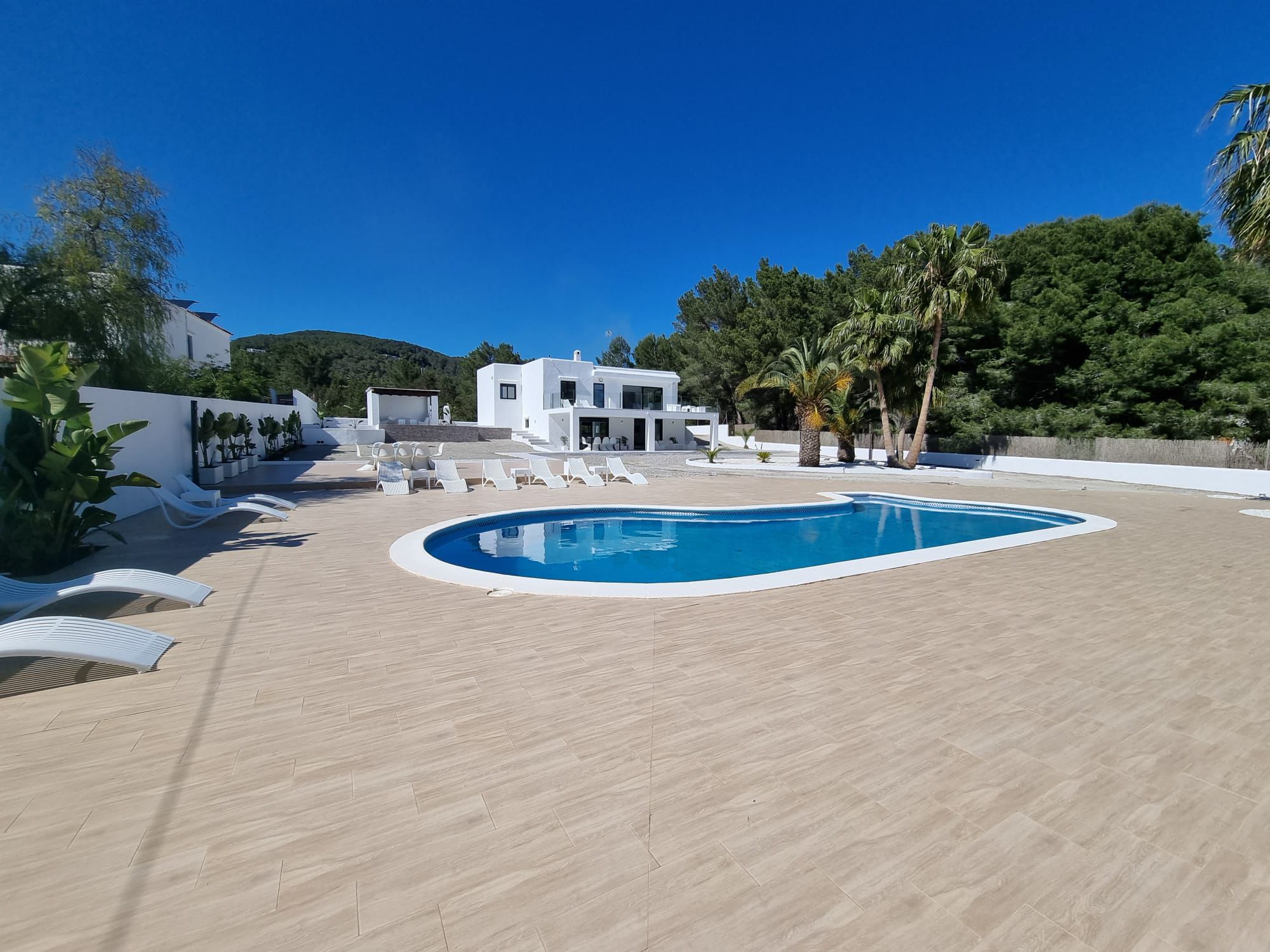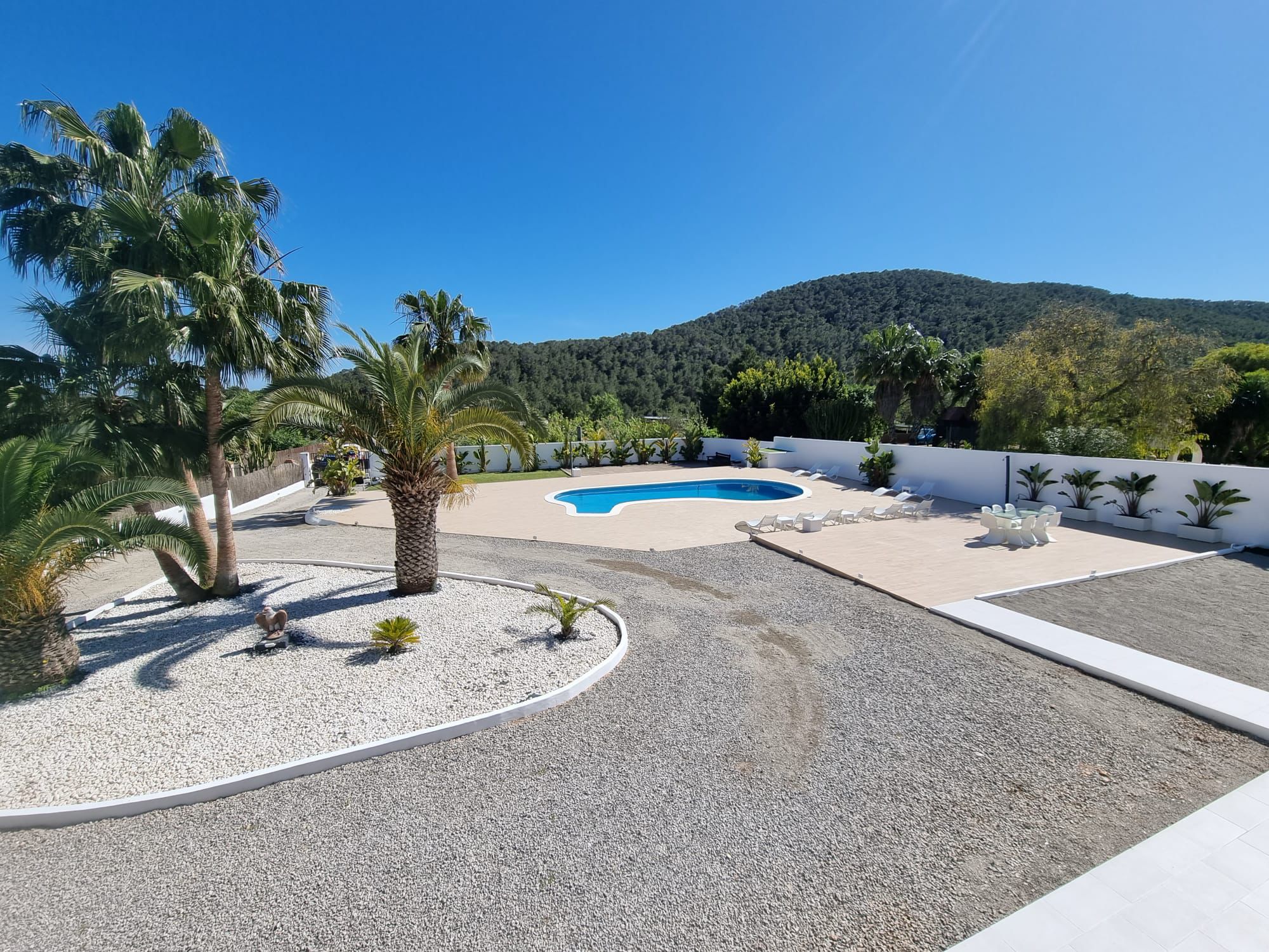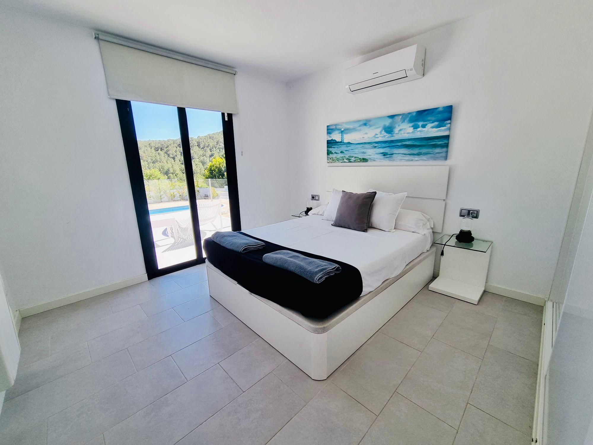This villa boasts a pool with a view and a fireplace. Featuring a private entrance, this air-conditioned villa consists of 2 living rooms, 4 separate bedrooms and 3 bathrooms with a walk-in shower and a bidet. Guests will find a stovetop, a refrigerator, kitchenware and an oven in the kitchen. The villa also offers a barbecue. The spacious villa provides a washing machine, a tea and coffee maker, a seating area as well as a terrace with garden views. The unit offers 7 beds. Featuring a garden, The Palms Villa features accommodations in Sant Jordi. This property offers access to a balcony, free private parking, and free Wifi. The villa provides a pool with scenic views and a 24-hour front desk. Providing a terrace and mountain views, the spacious villa includes 4 bedrooms, 2 living rooms, flat-screen TV, an equipped kitchen, and 3 bathrooms with a walk-in shower and a bidet. Towels and bed linen are provided in the villa. There's also a seating area and a fireplace. Ibiza Port is 5.7 miles from the villa, while Marina Botafoch is 5.9 miles away. The nearest airport is Ibiza Airport, 1.9 miles from The Palms Villa.