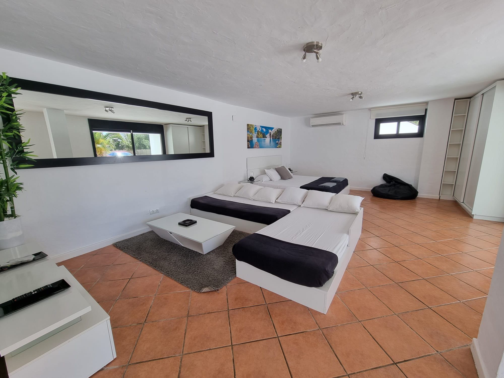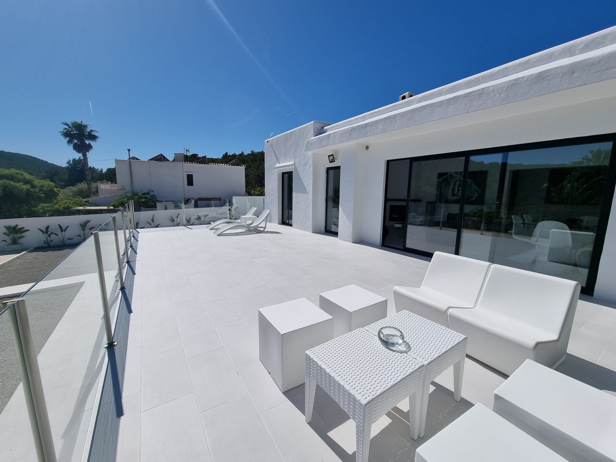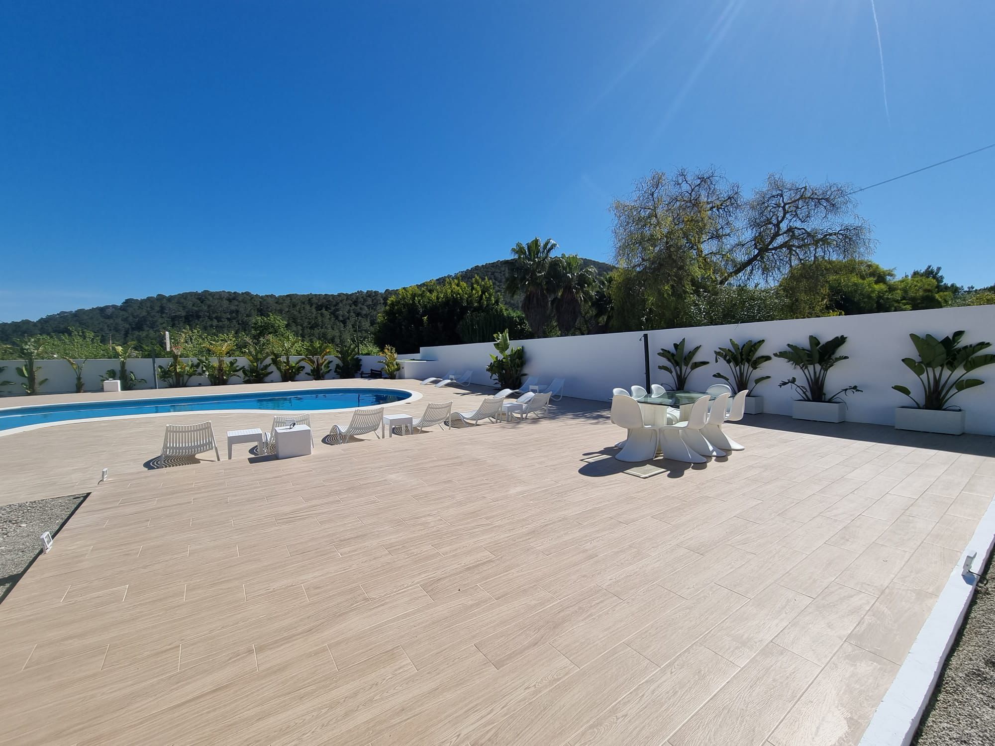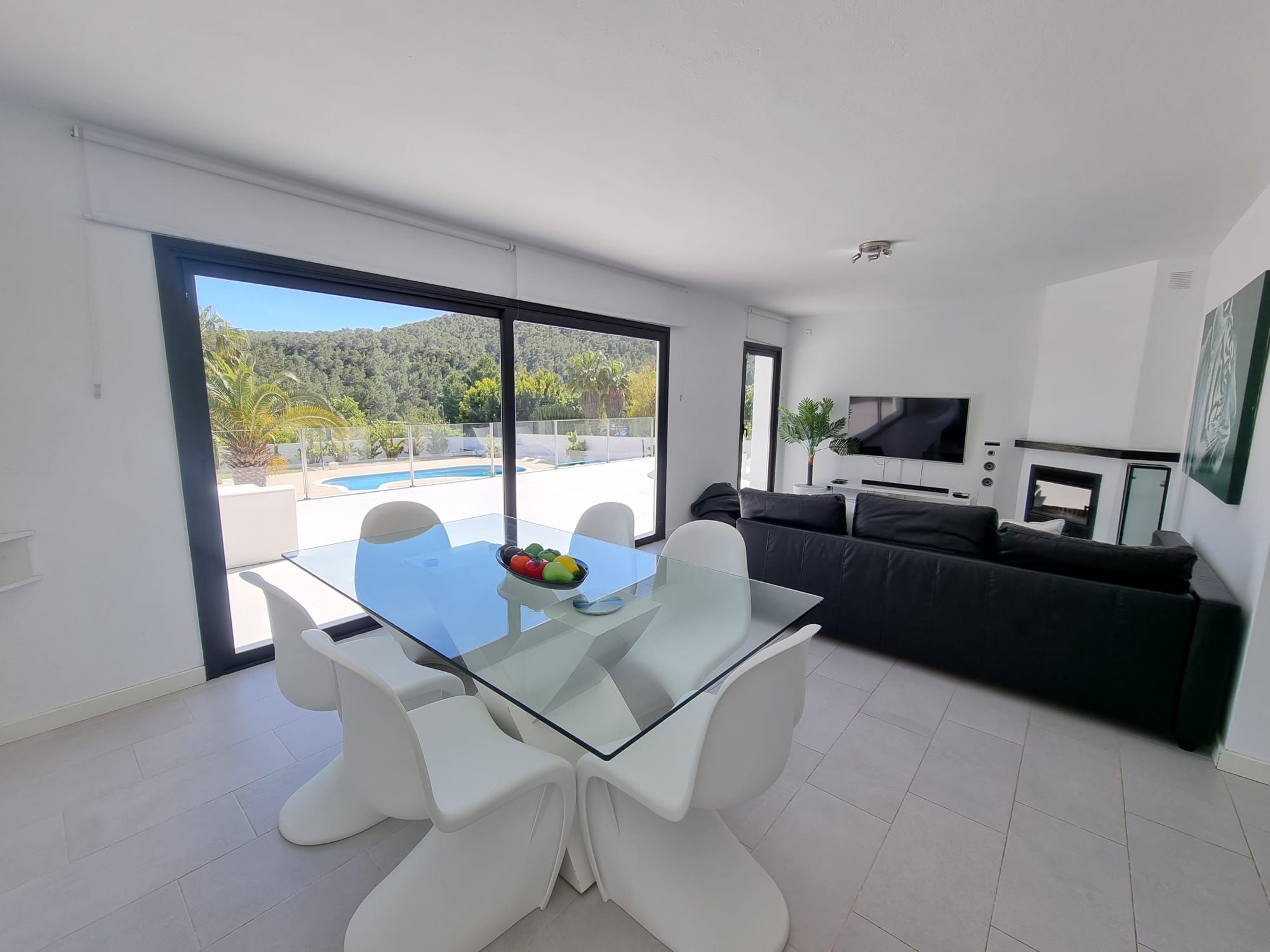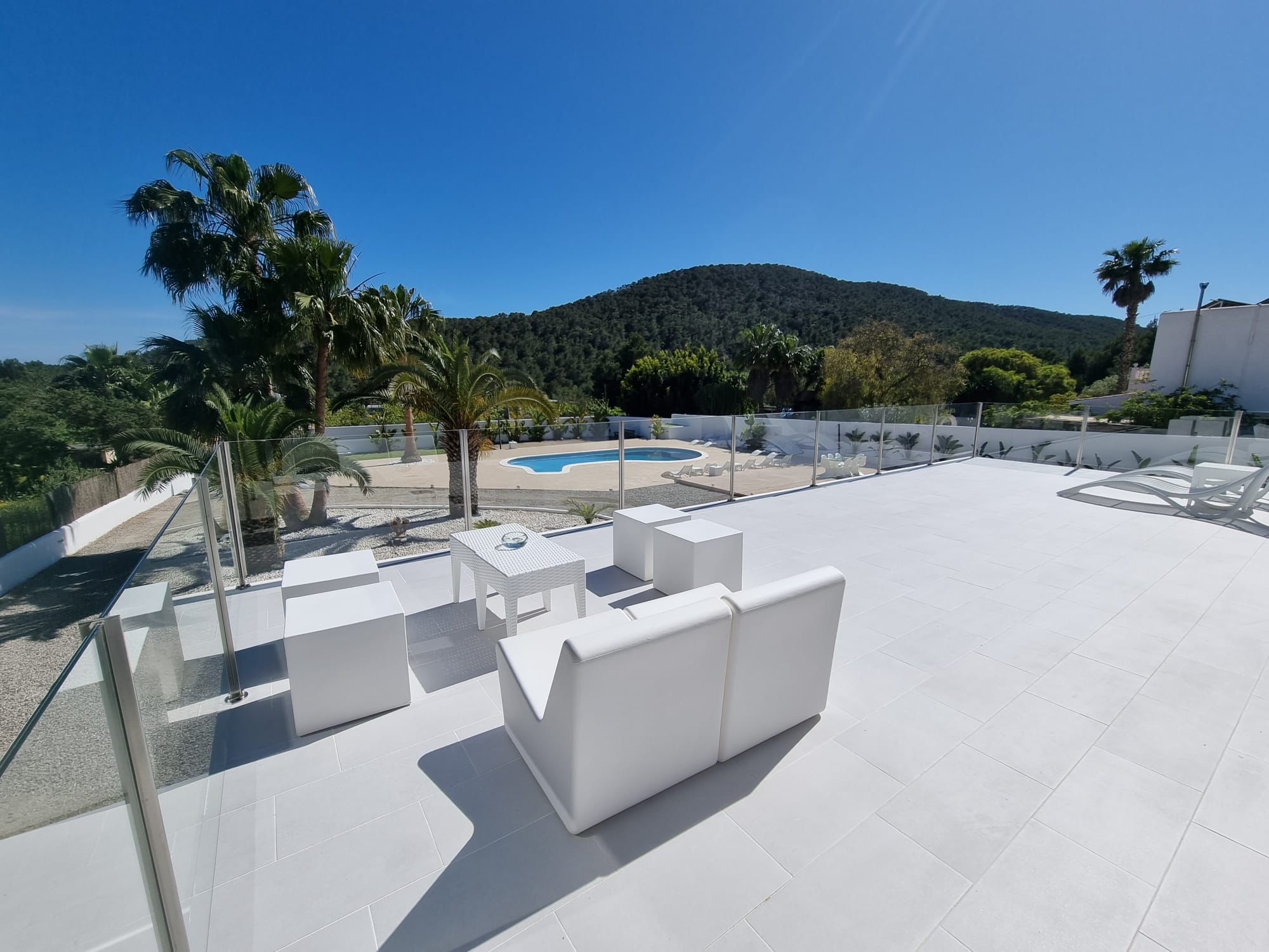 This villa boasts a pool with a view and a fireplace. Featuring a private entrance, this air-conditioned villa consists of 2 living rooms, 4 separate bedrooms and 3 bathrooms with a walk-in shower and a bidet. Guests will find a stovetop, a refrigerator, kitchenware and an oven in the kitchen. The villa also offers a barbecue. The spacious villa provides a washing machine, a tea and coffee maker, a seating area as well as a terrace with garden views. The unit offers 7 beds. Featuring a garden, The Palms Villa features accommodations in Sant Jordi. This property offers access to a balcony, free private parking, and free Wifi. The villa provides a pool with scenic views and a 24-hour front desk. Providing a terrace and mountain views, the spacious villa includes 4 bedrooms, 2 living rooms, flat-screen TV, an equipped kitchen, and 3 bathrooms with a walk-in shower and a bidet. Towels and bed linen are provided in the villa. There's also a seating area and a fireplace. Ibiza Port is 5.7 miles from the villa, while Marina Botafoch is 5.9 miles away. The nearest airport is Ibiza Airport, 1.9 miles from The Palms Villa.
